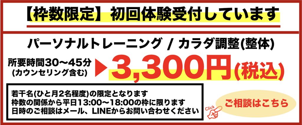 ジムでは効果が実感できなかった方、セルフでの調整は限界の可能性があります。身体にはどうしても誰かの手を入れなければ整えられない箇所もあります。
